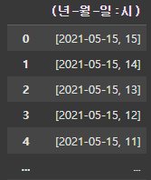 ✔️ object 타입의 '(년-월-일:시)' 컬럼을 pandas에서 인식할 수 있는 datetime 형태로 변경해보자.